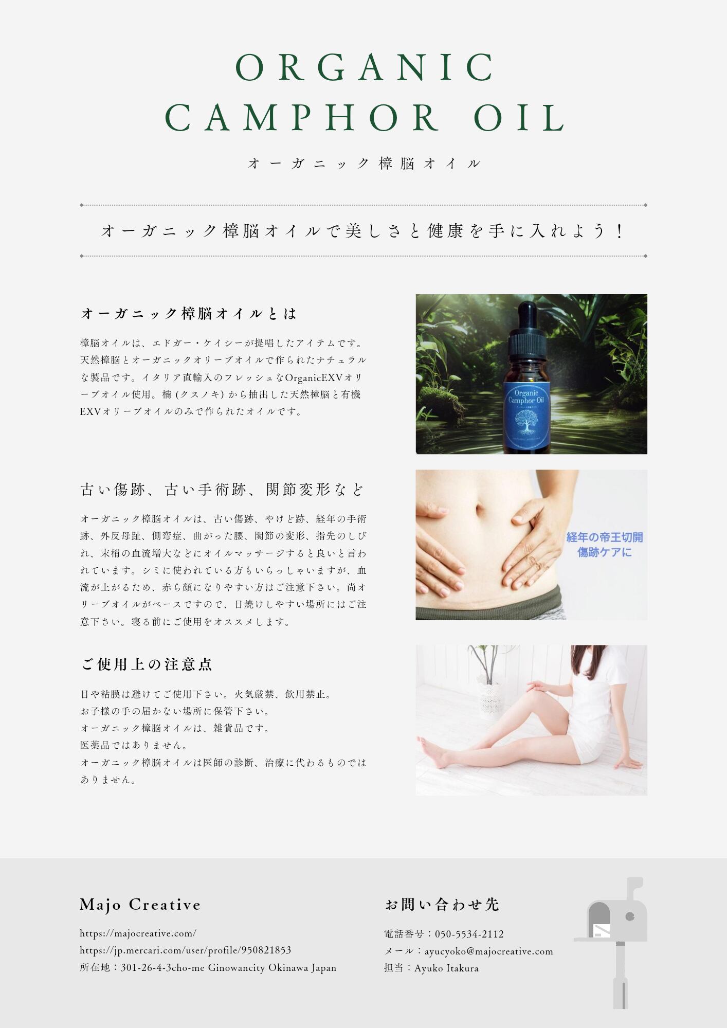 オーガニック樟脳オイルは医師の診断、治療に代わるものではありません。