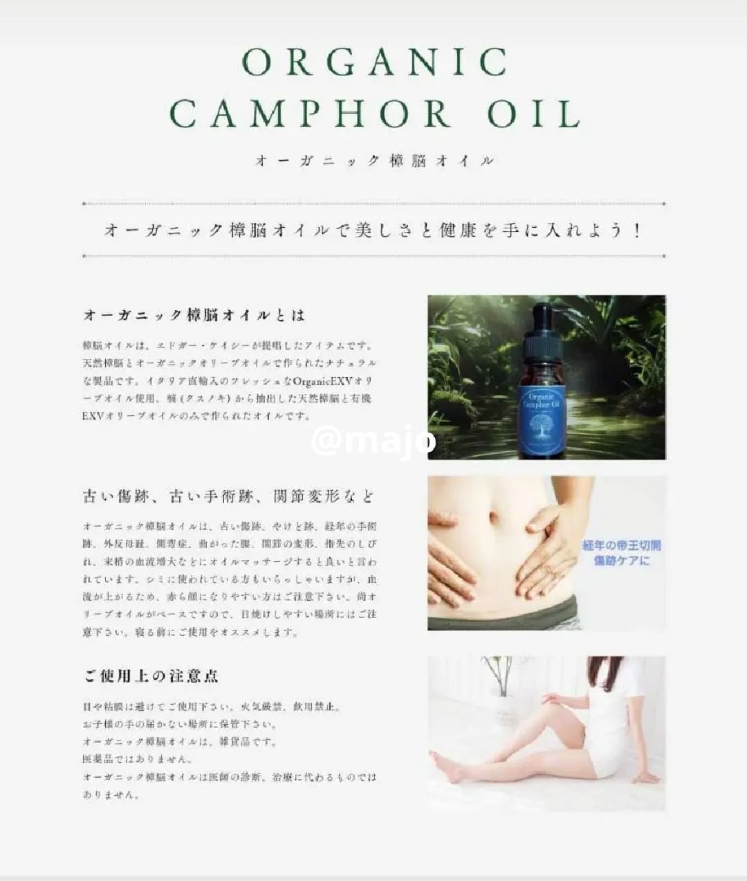 オーガニック樟脳オイルは医師の診断、治療に代わるものではありません。